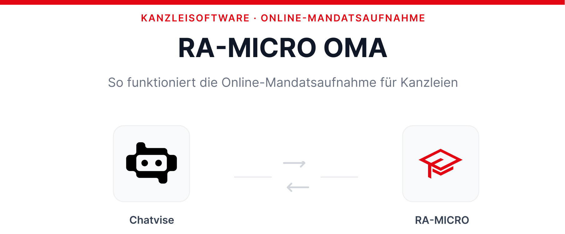 RA-MICRO OMA (Online-Mandat) kostenlos einrichten: So bindet ihr den digitalen Mandatsaufnahmebogen in eure Kanzleiwebsite ein und verarbeitet neue Mandate automatisch in RA-MICRO weiter.