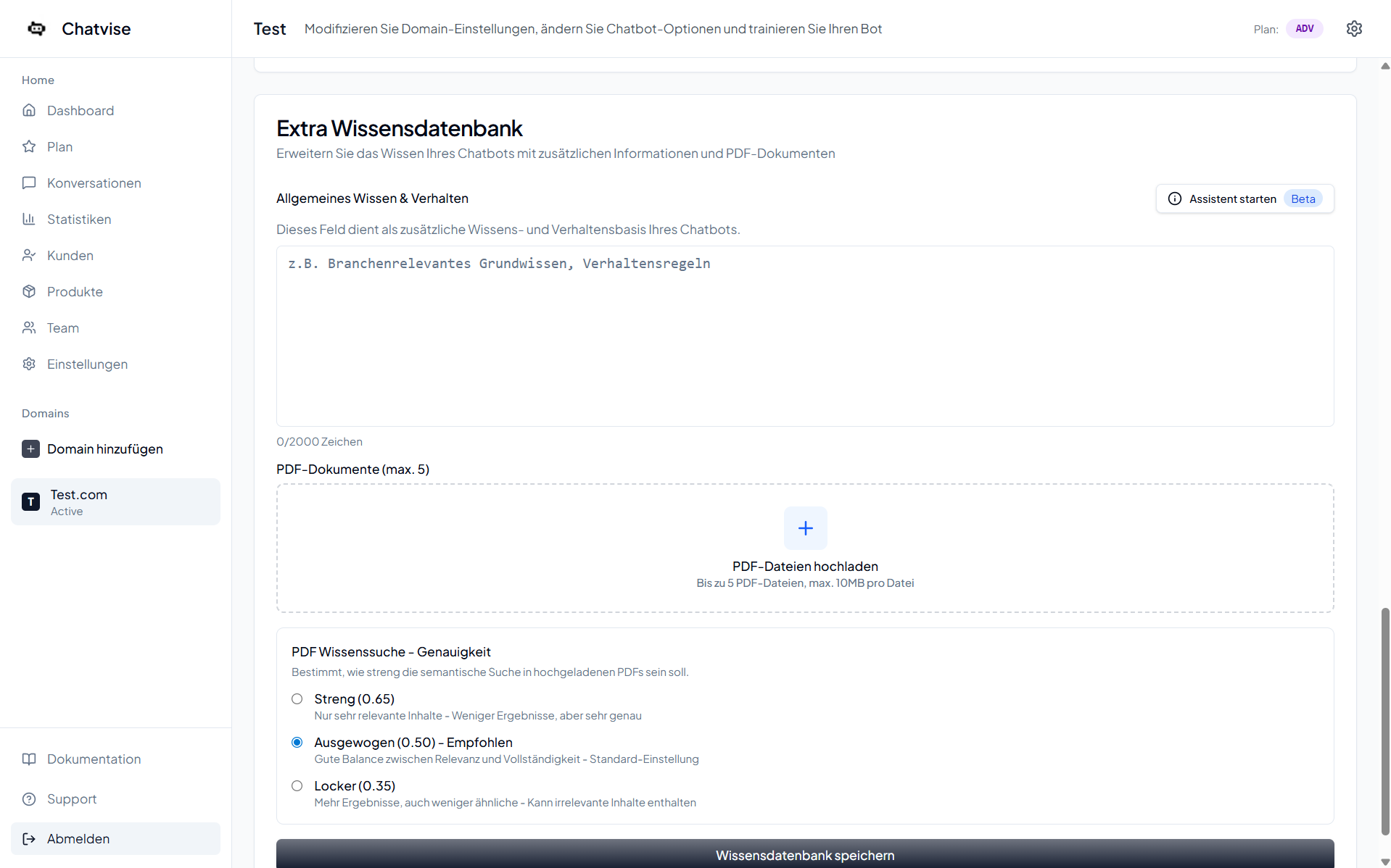 Dokumente hochladen, der Bot lernt automatisch daraus.