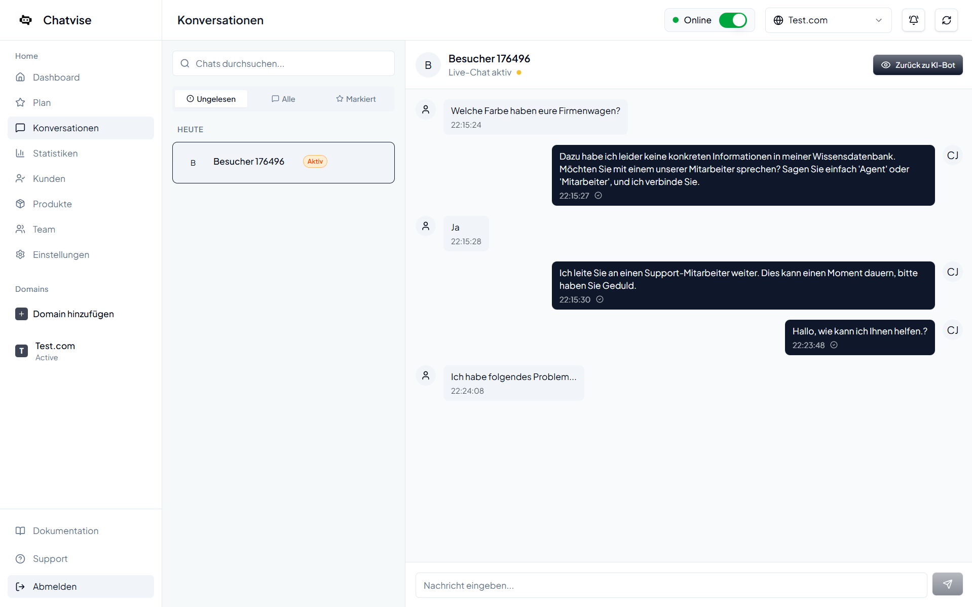 Umfassende Funktionen für Kundenservice, Lead-Generierung und Team-Zusammenarbeit. Von KI-Chatbot bis Analytics.
